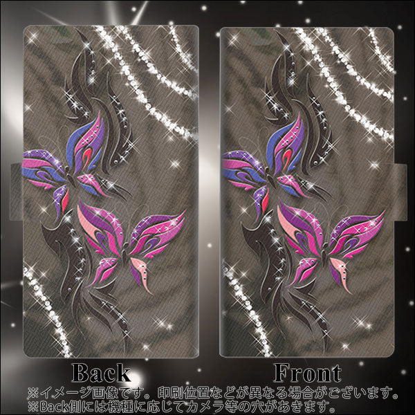 au ギャラクシーA41 SCV48 画質仕上げ プリント手帳型ケース(薄型スリム)【1164 キラめくストーンと蝶】