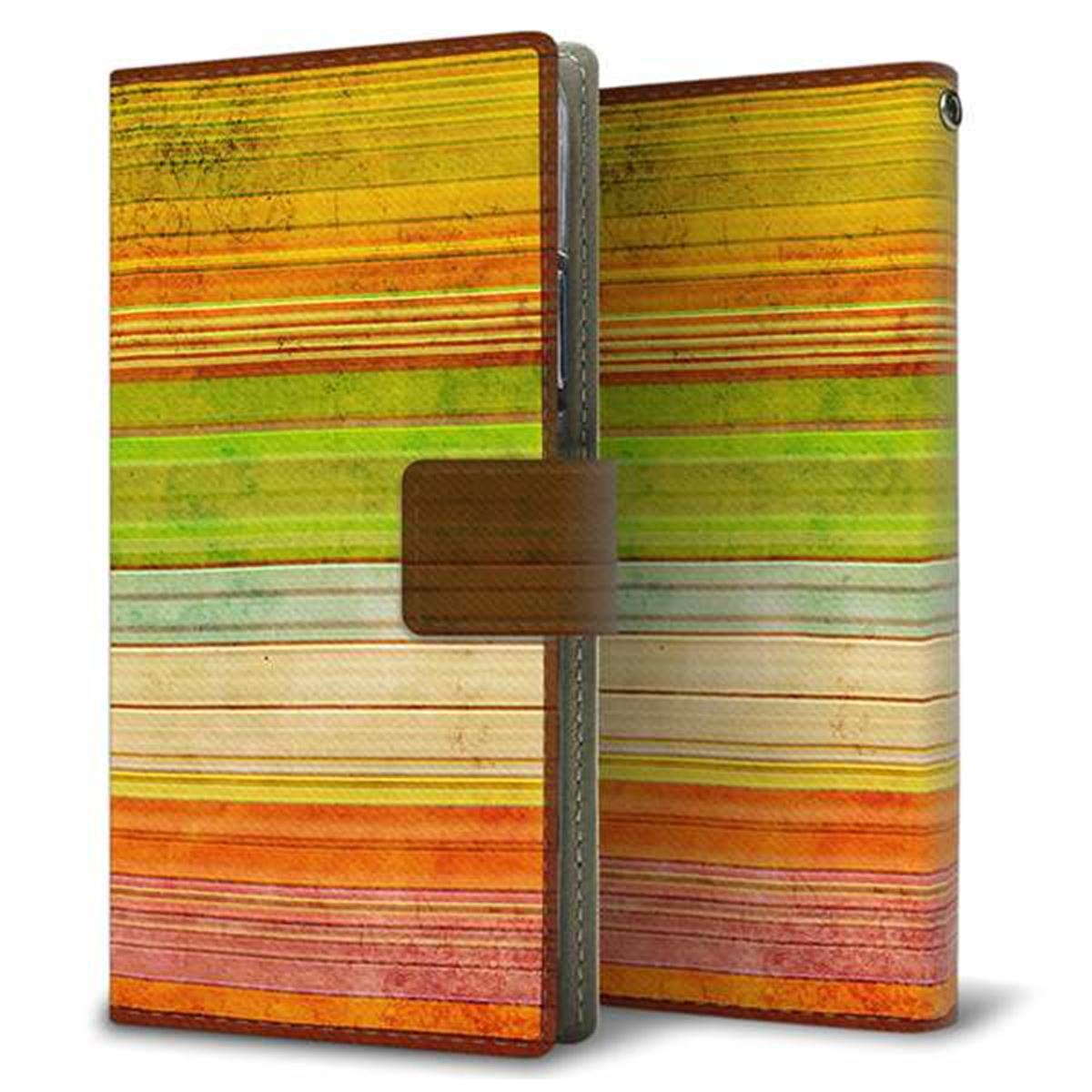 au ギャラクシーA41 SCV48 画質仕上げ プリント手帳型ケース(薄型スリム)【1324 ビンテージボーダー(色彩)】