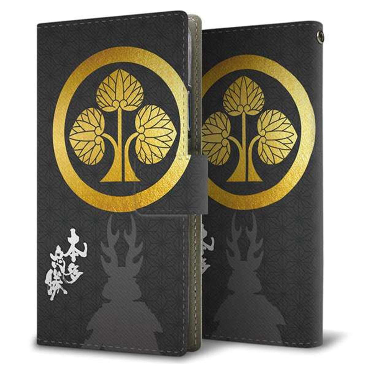 au ギャラクシーA41 SCV48 画質仕上げ プリント手帳型ケース(薄型スリム)【AB814 本多忠勝 シルエットと家紋】