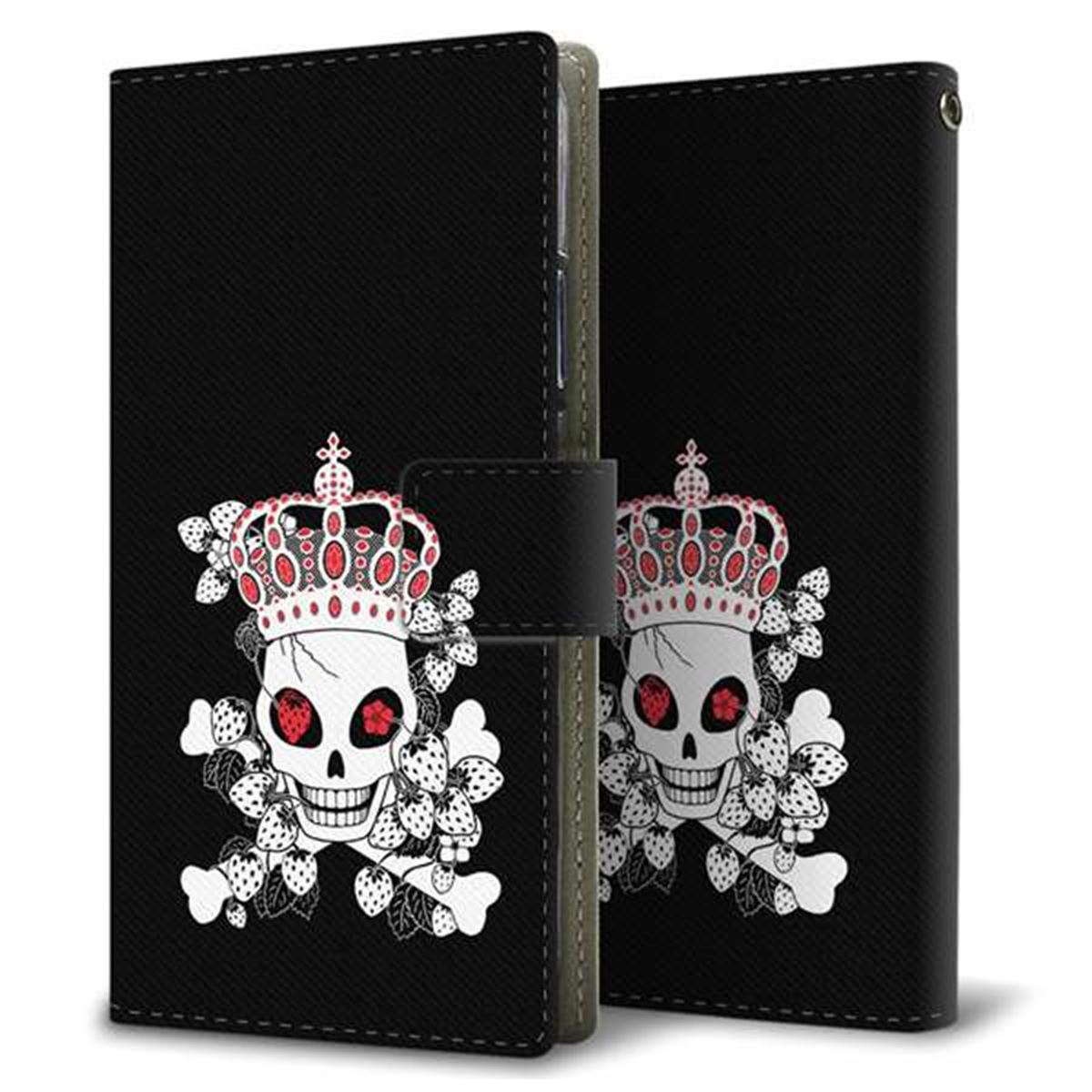 au ギャラクシーA41 SCV48 画質仕上げ プリント手帳型ケース(薄型スリム)【AG801 苺骸骨王冠(黒)】