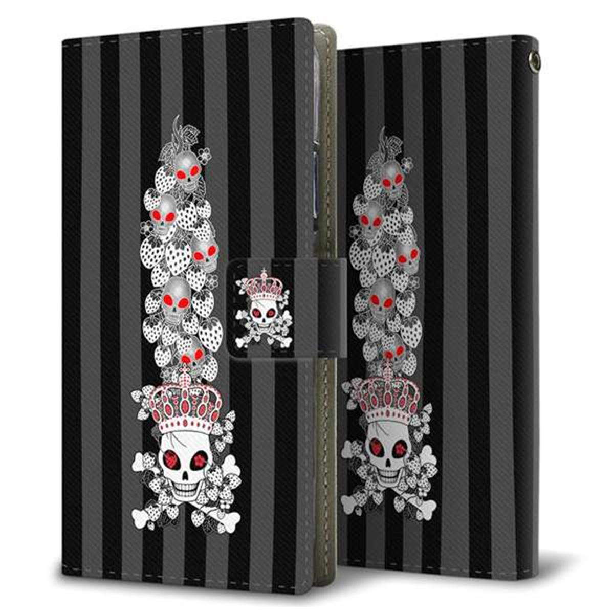 au ギャラクシーA41 SCV48 画質仕上げ プリント手帳型ケース(薄型スリム)【AG802 苺骸骨王冠蔦(黒)】