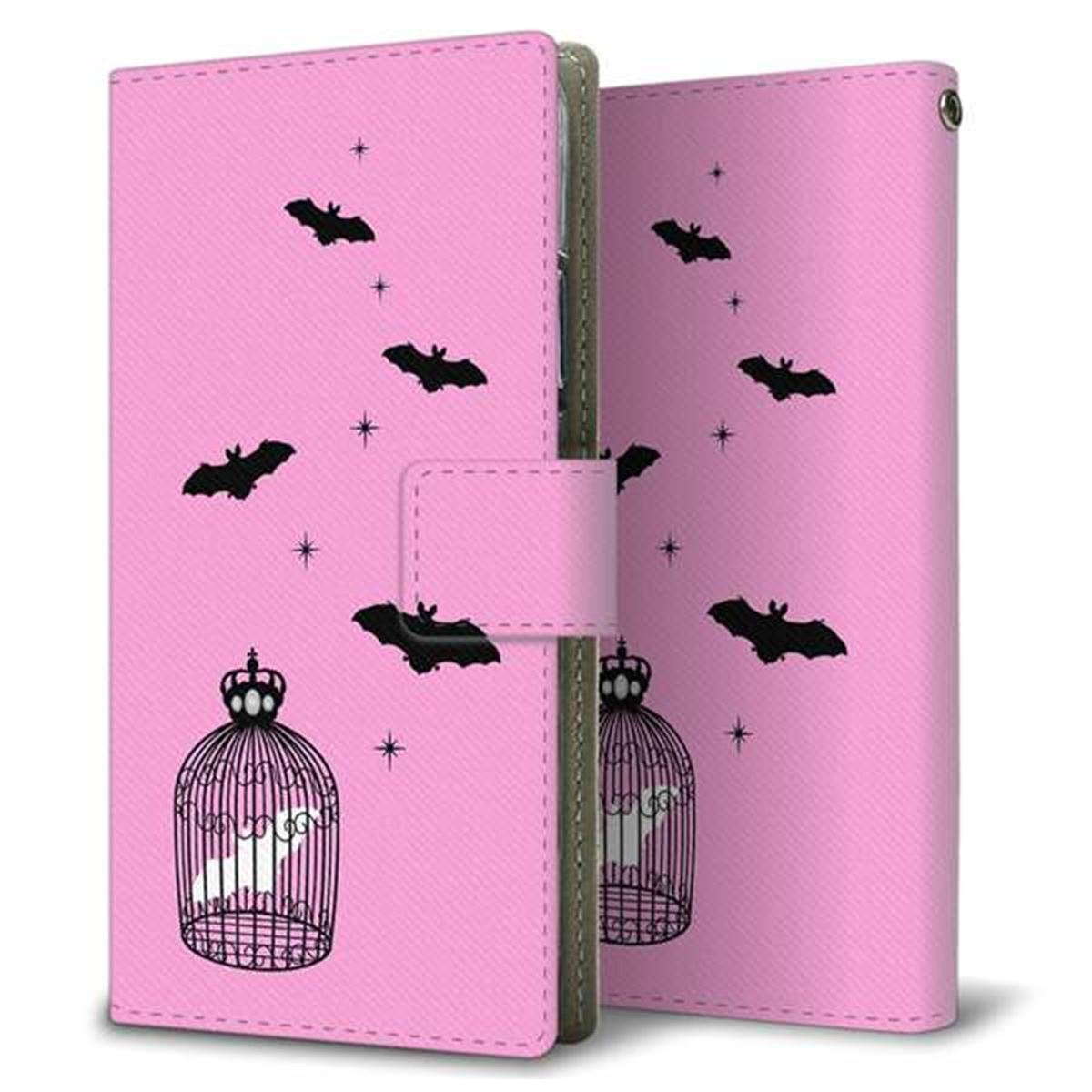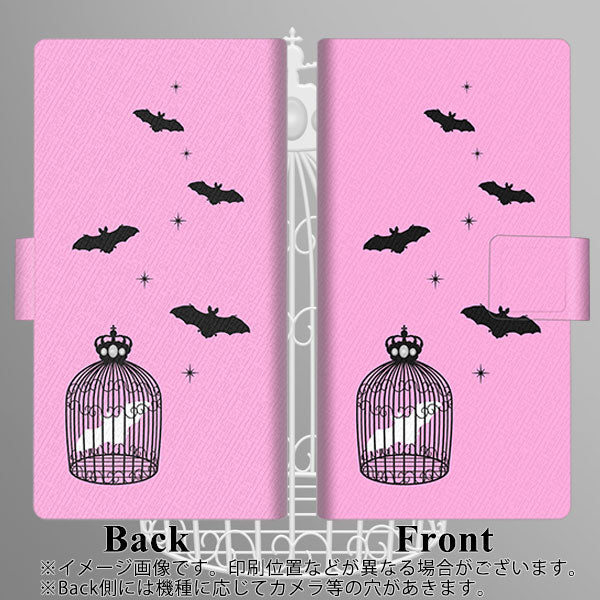 au ギャラクシーA41 SCV48 画質仕上げ プリント手帳型ケース(薄型スリム)【AG808 こうもりの王冠鳥かご(ピンク×黒)】