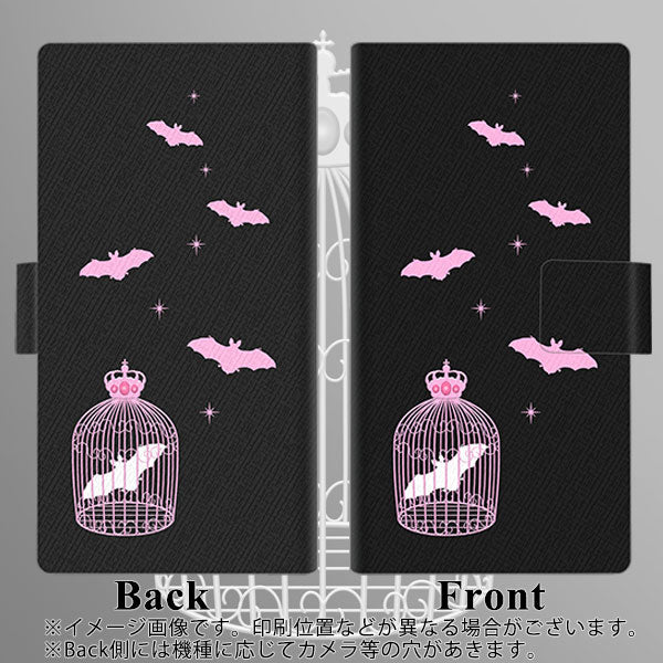 au ギャラクシーA41 SCV48 画質仕上げ プリント手帳型ケース(薄型スリム)【AG809 こうもりの王冠鳥かご(黒×ピンク)】