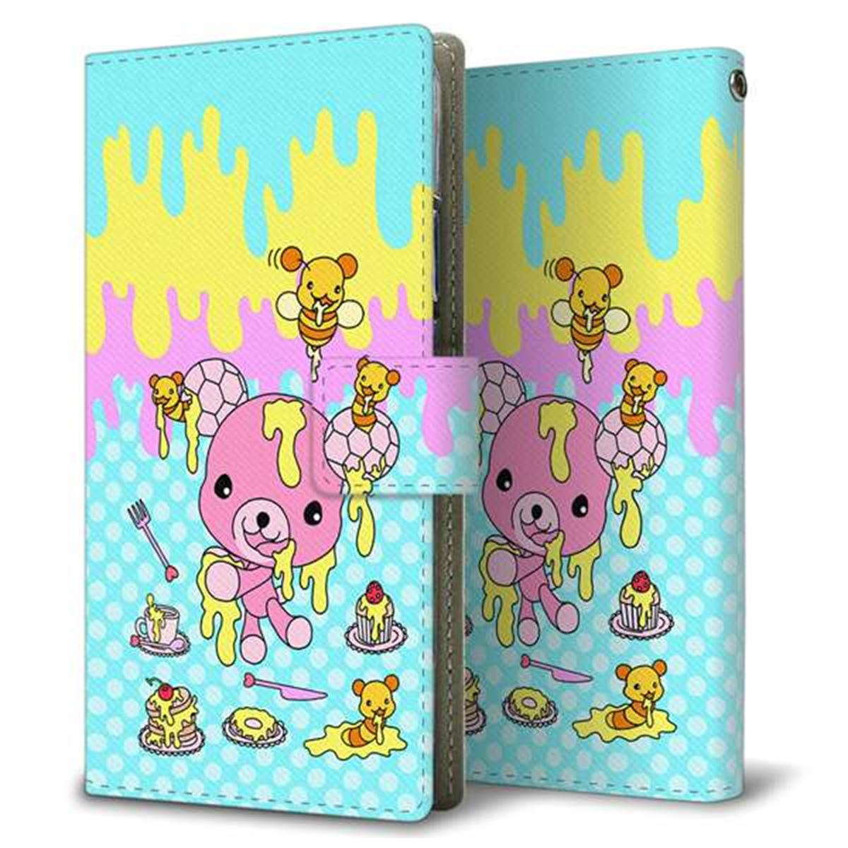 au ギャラクシーA41 SCV48 画質仕上げ プリント手帳型ケース(薄型スリム)【AG821 ハニベア(水玉水色)】
