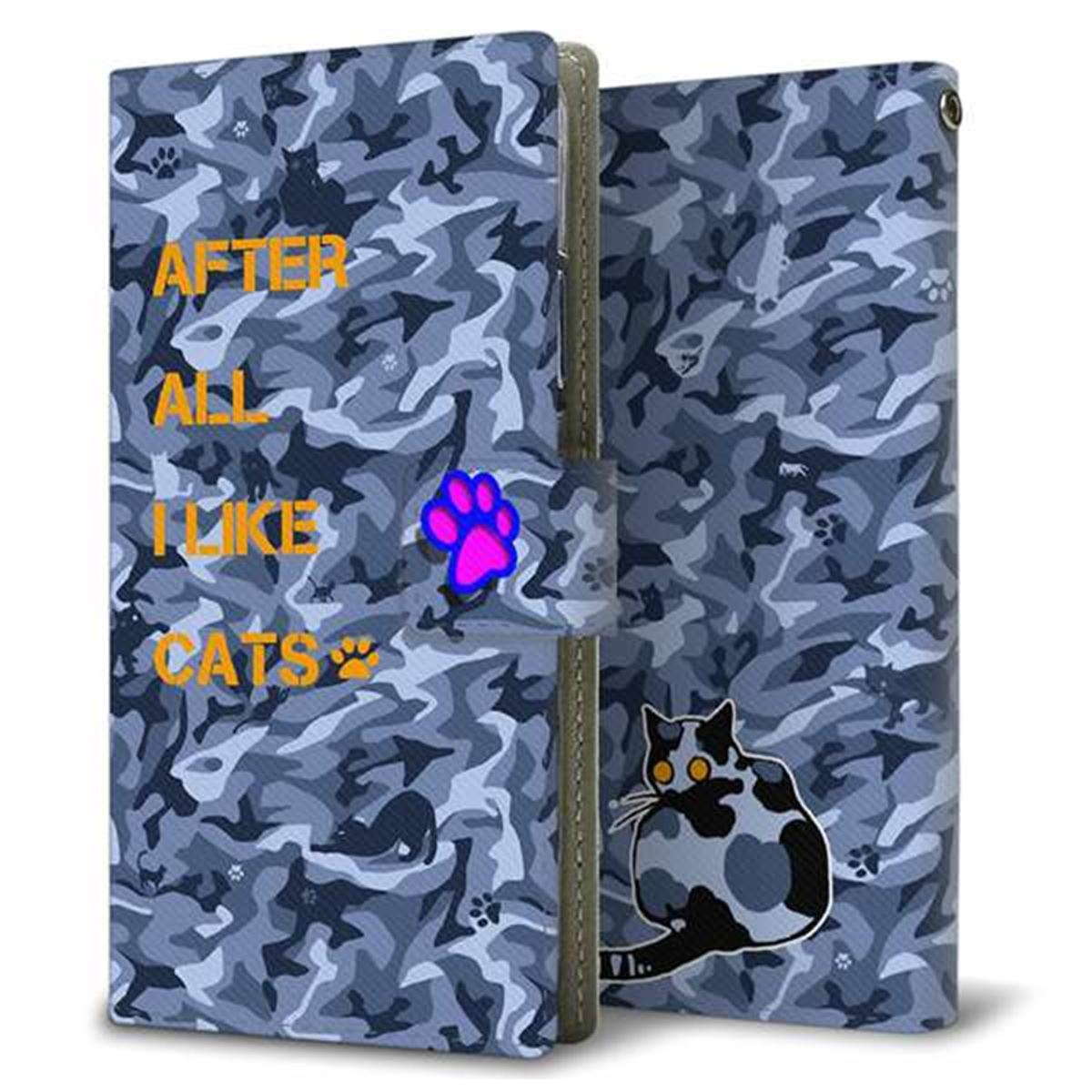 au ギャラクシーA41 SCV48 画質仕上げ プリント手帳型ケース(薄型スリム)【YA892 青迷彩ネコ02 L】