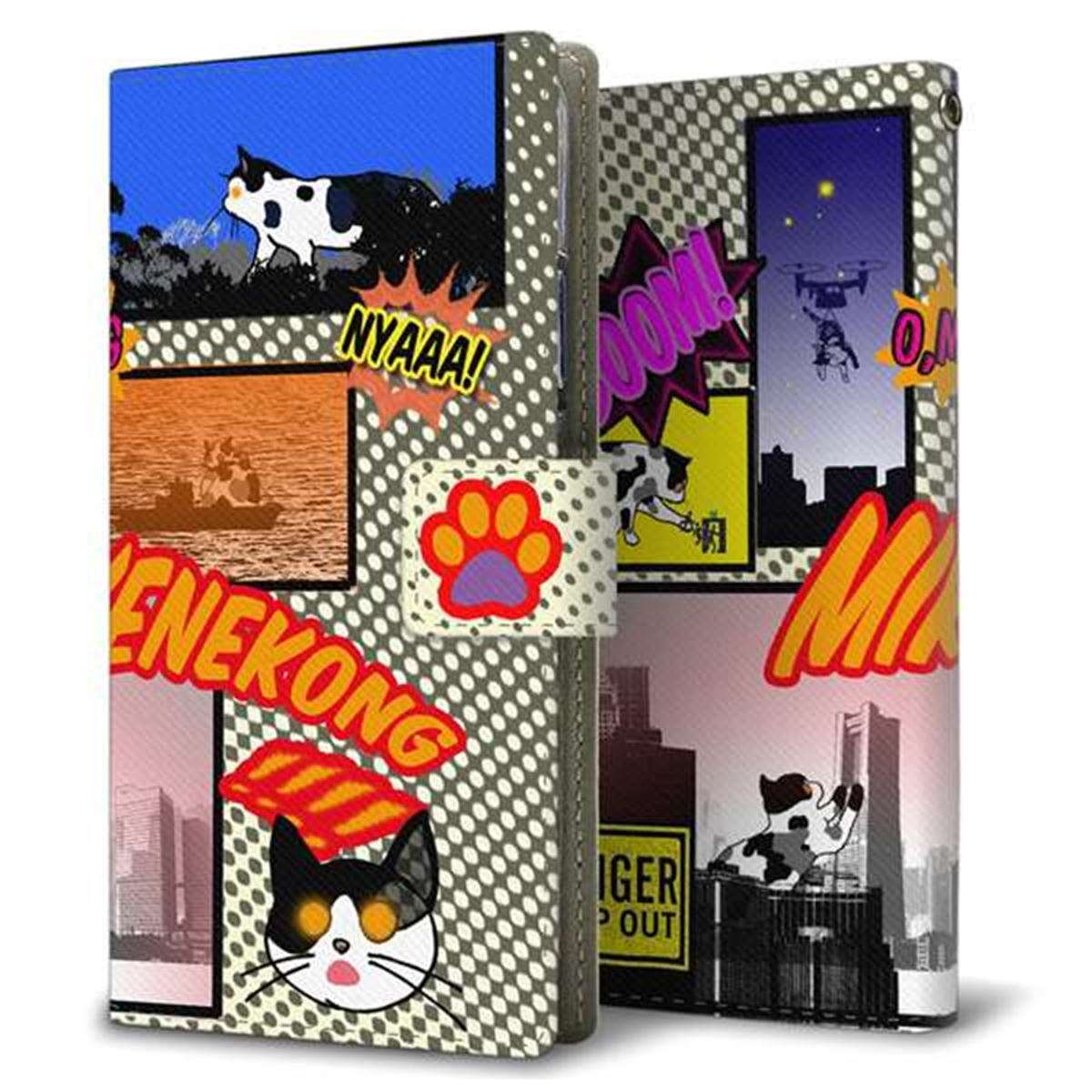 au ギャラクシーA41 SCV48 画質仕上げ プリント手帳型ケース(薄型スリム)【YA899 ミケネコング L】