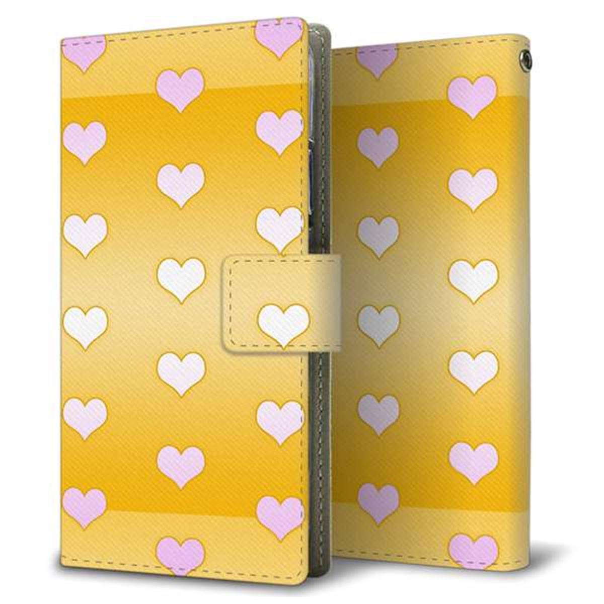 au ギャラクシーA41 SCV48 画質仕上げ プリント手帳型ケース(薄型スリム)【YB967 ハートイエロー】