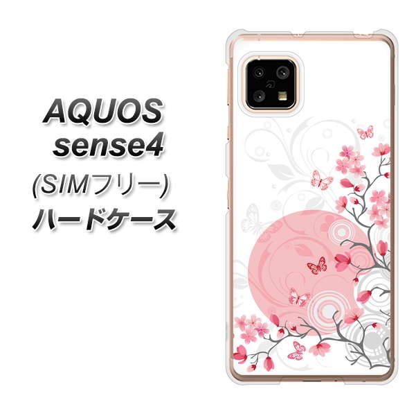 SIMフリー アクオスセンス4 高画質仕上げ 背面印刷 ハードケース【030 花と蝶(うす桃色)】