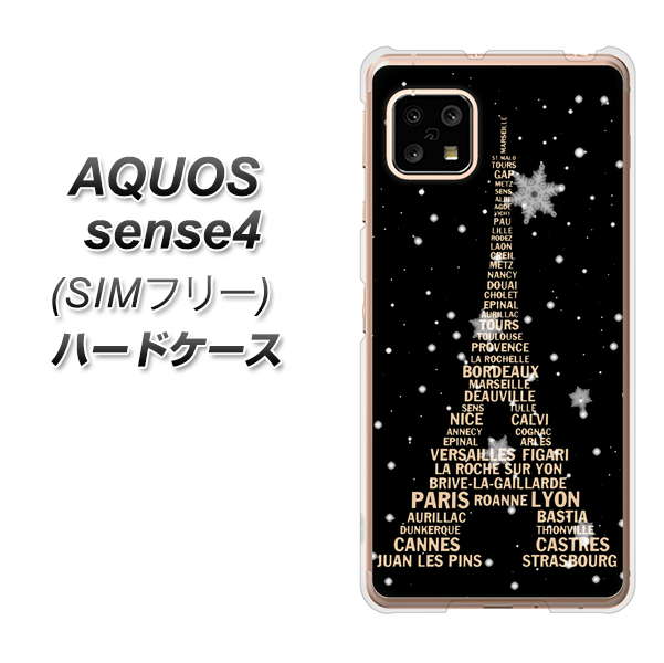 SIMフリー アクオスセンス4 高画質仕上げ 背面印刷 ハードケース【526 エッフェル塔bk-gd】