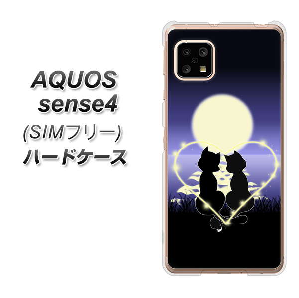 SIMフリー アクオスセンス4 高画質仕上げ 背面印刷 ハードケース【604 月明かりの恋ネコ】