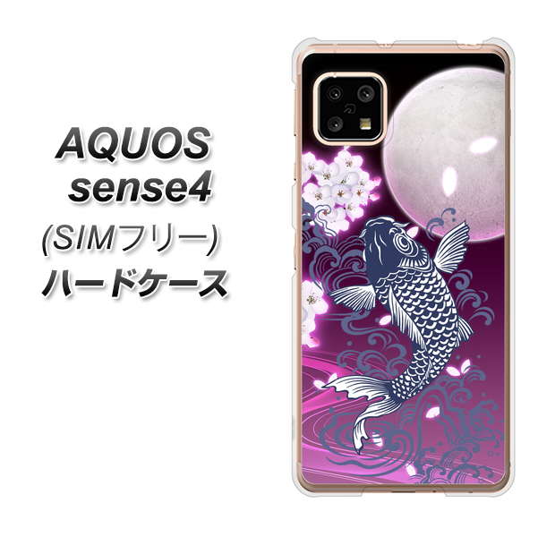 SIMフリー アクオスセンス4 高画質仕上げ 背面印刷 ハードケース【1029 月と鯉(紫)】