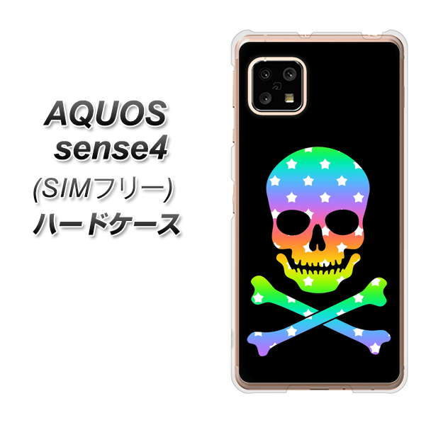 SIMフリー アクオスセンス4 高画質仕上げ 背面印刷 ハードケース【1072 ドクロフレームレインボースター】