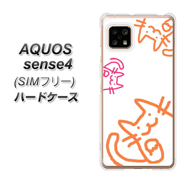 SIMフリー アクオスセンス4 高画質仕上げ 背面印刷 ハードケース【1098 手まねきする3匹のネコ】