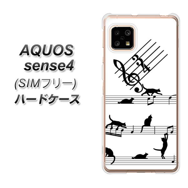 SIMフリー アクオスセンス4 高画質仕上げ 背面印刷 ハードケース【1112 音符とじゃれるネコ2】