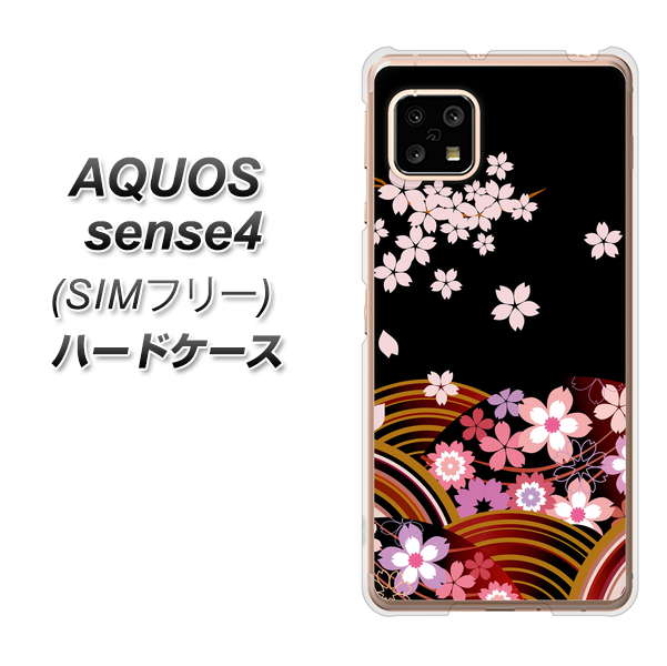 SIMフリー アクオスセンス4 高画質仕上げ 背面印刷 ハードケース【1237 和柄&筆文字・夜桜の宴】