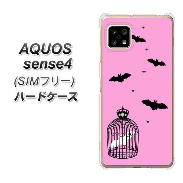 SIMフリー アクオスセンス4 高画質仕上げ 背面印刷 ハードケース【AG808 こうもりの王冠鳥かご(ピンク×黒)】