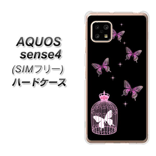 SIMフリー アクオスセンス4 高画質仕上げ 背面印刷 ハードケース【AG811 蝶の王冠鳥かご(黒×ピンク)】
