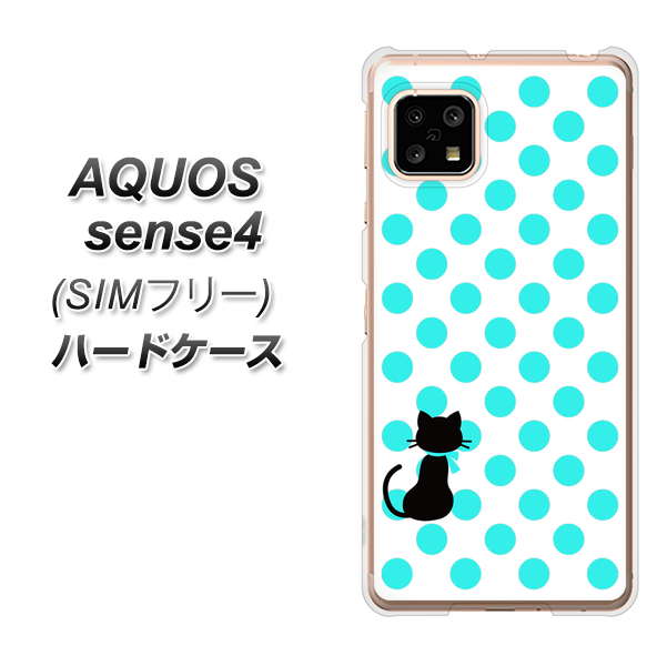 SIMフリー アクオスセンス4 高画質仕上げ 背面印刷 ハードケース【EK809 ネコとシンプル ライトブルー】
