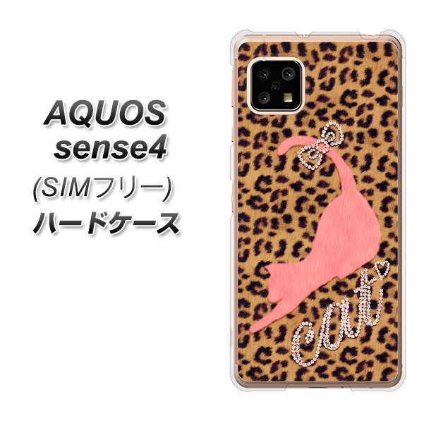 SIMフリー アクオスセンス4 高画質仕上げ 背面印刷 ハードケース【KG801 キャットレオパード(ブラウン)】