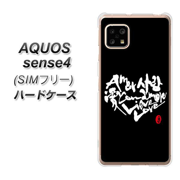 SIMフリー アクオスセンス4 高画質仕上げ 背面印刷 ハードケース【OE802 世界の言葉で「愛(ブラック)」のデザイン筆文字(書道家作品)】