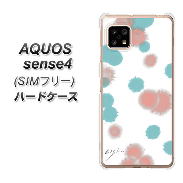 SIMフリー アクオスセンス4 高画質仕上げ 背面印刷 ハードケース【OE834 滴 水色×ピンク】