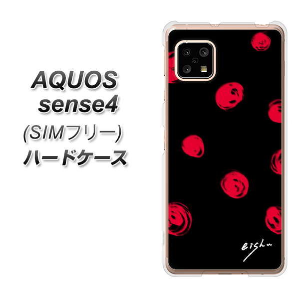 SIMフリー アクオスセンス4 高画質仕上げ 背面印刷 ハードケース【OE837 手描きシンプル ブラック×レッド】
