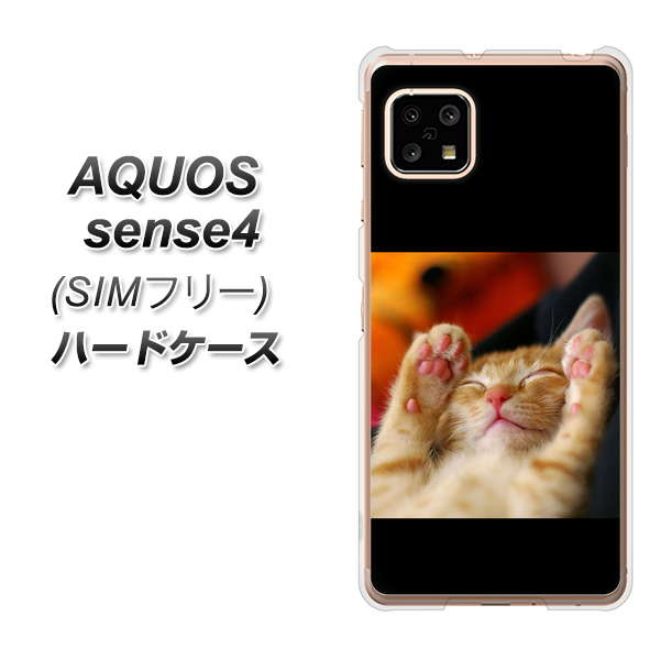 SIMフリー アクオスセンス4 高画質仕上げ 背面印刷 ハードケース【VA804 爆睡するネコ】