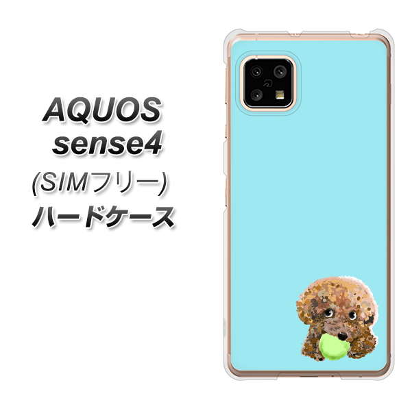 SIMフリー アクオスセンス4 高画質仕上げ 背面印刷 ハードケース【YJ054 トイプードル&ボール(ブルー)】