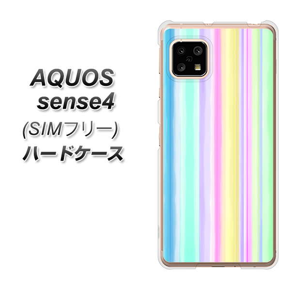 SIMフリー アクオスセンス4 高画質仕上げ 背面印刷 ハードケース【YJ313 ストライプ レインボー】