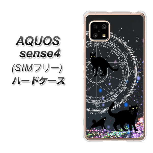 SIMフリー アクオスセンス4 高画質仕上げ 背面印刷 ハードケース【YJ330 魔法陣猫 キラキラ 黒猫】