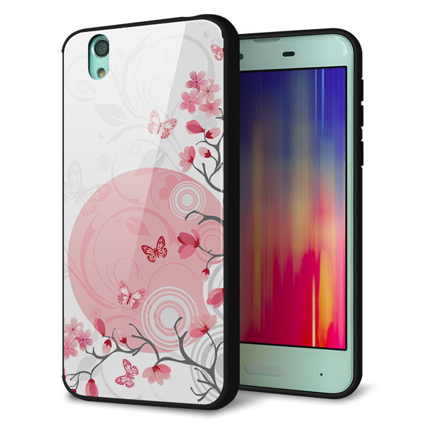 docomo アクオス センス SH-01K 強化ガラス&TPUスマホケース ガラプリ【030 花と蝶(うす桃色)】