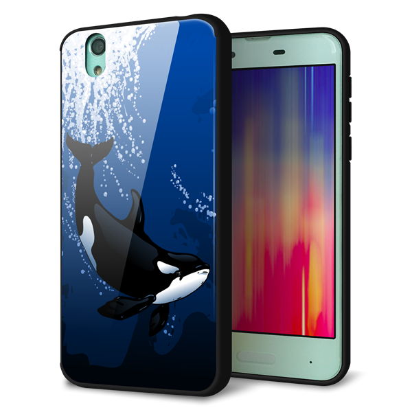 docomo アクオス センス SH-01K 強化ガラス&TPUスマホケース ガラプリ【423 シャチ】