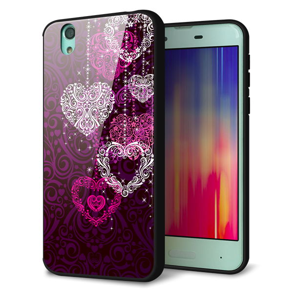 docomo アクオス センス SH-01K 強化ガラス&TPUスマホケース ガラプリ【468 ハートのシャンデリア】