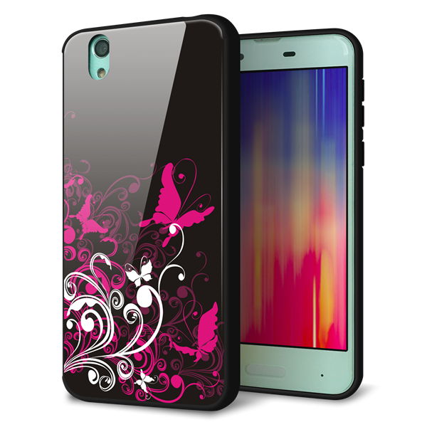 docomo アクオス センス SH-01K 強化ガラス&TPUスマホケース ガラプリ【585 闇に舞う蝶】