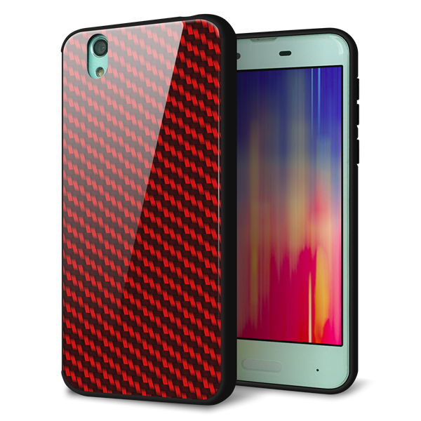 docomo アクオス センス SH-01K 強化ガラス&TPUスマホケース ガラプリ【EK906 レッドカーボン】
