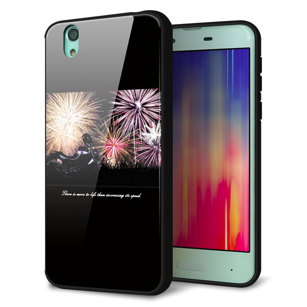 docomo アクオス センス SH-01K 強化ガラス&TPUスマホケース ガラプリ【KM878 バイクと花火】