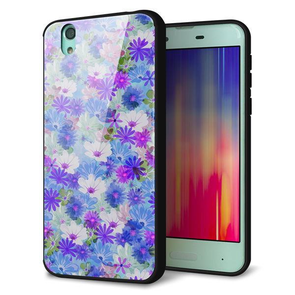docomo アクオス センス SH-01K 強化ガラス&TPUスマホケース ガラプリ【SC875 リバティプリント プレスドフラワー(ブルー)】