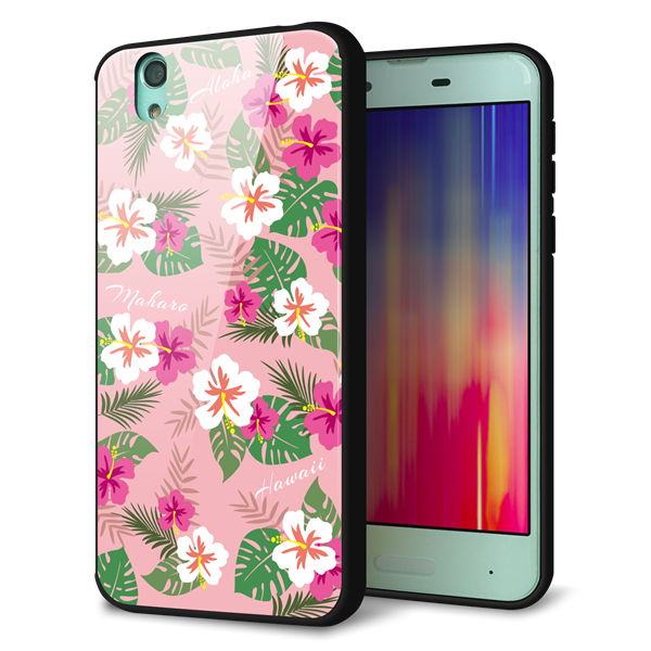 docomo アクオス センス SH-01K 強化ガラス&TPUスマホケース ガラプリ【SC882 ハワイアンアロハレトロ(ピンク)】