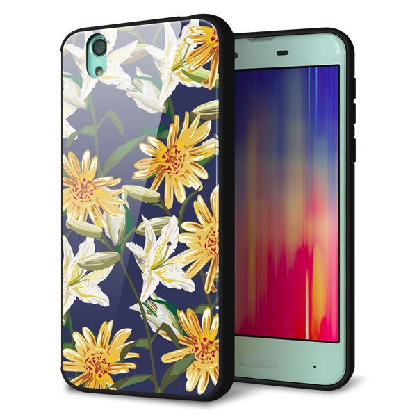 docomo アクオス センス SH-01K 強化ガラス&TPUスマホケース ガラプリ【SC893 ボタニカル デイジー&リリー】