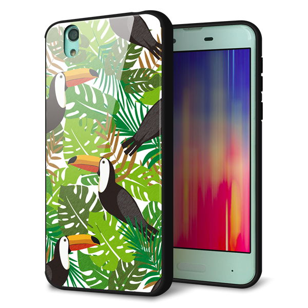 docomo アクオス センス SH-01K 強化ガラス&TPUスマホケース ガラプリ【SC894 ボタニカル トロピカルバード】