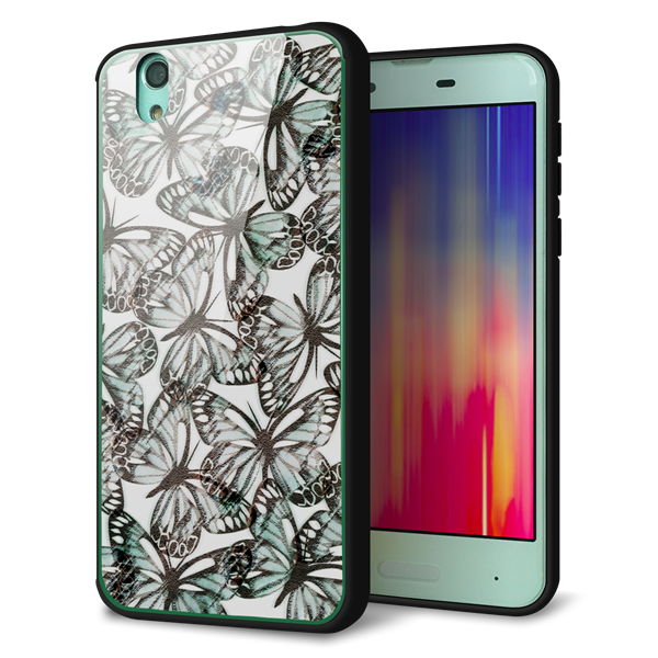 docomo アクオス センス SH-01K 強化ガラス&TPUスマホケース ガラプリ【SC902 ガーデンバタフライ グリーン】