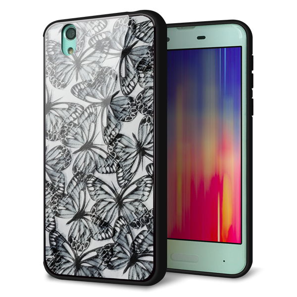 docomo アクオス センス SH-01K 強化ガラス&TPUスマホケース ガラプリ【SC905 ガーデンバタフライ ブラック】