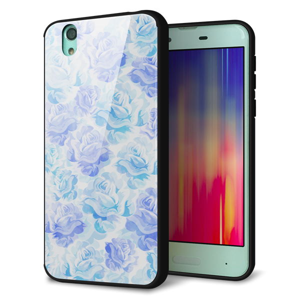 docomo アクオス センス SH-01K 強化ガラス&TPUスマホケース ガラプリ【SC927 ローズ ブルー】
