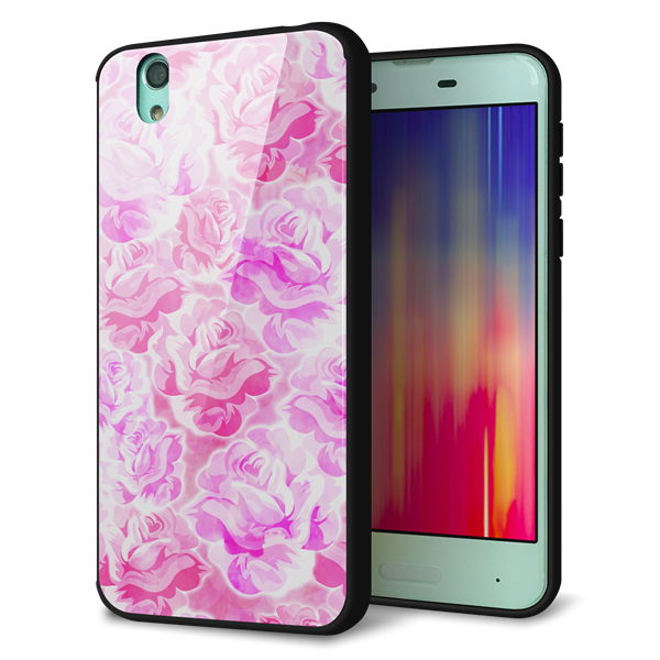 docomo アクオス センス SH-01K 強化ガラス&TPUスマホケース ガラプリ【SC928 ローズ ピンク】