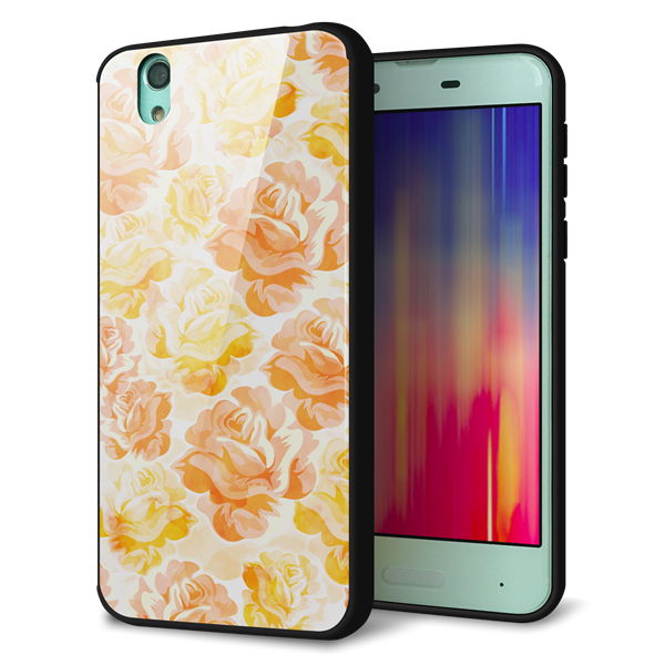docomo アクオス センス SH-01K 強化ガラス&TPUスマホケース ガラプリ【SC931 ローズ イエロー】
