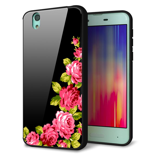 docomo アクオス センス SH-01K 強化ガラス&TPUスマホケース ガラプリ【VA826 バラのフレーム(黒)】