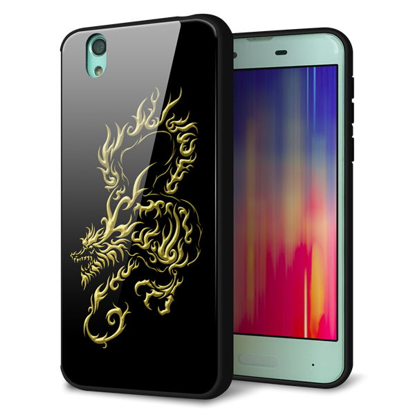 docomo アクオス センス SH-01K 強化ガラス&TPUスマホケース ガラプリ【VA831 闇と龍】