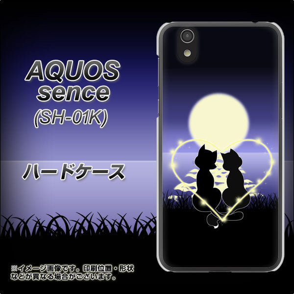 docomo アクオス センス SH-01K 高画質仕上げ 背面印刷 ハードケース【604 月明かりの恋ネコ】