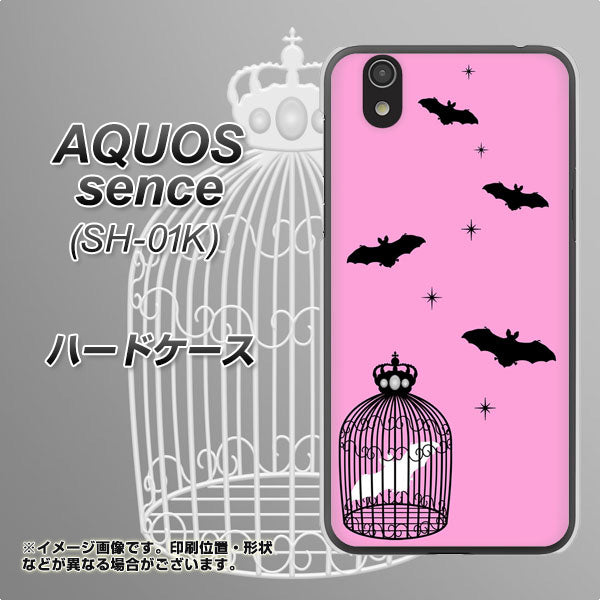 docomo アクオス センス SH-01K 高画質仕上げ 背面印刷 ハードケース【AG808 こうもりの王冠鳥かご(ピンク×黒)】