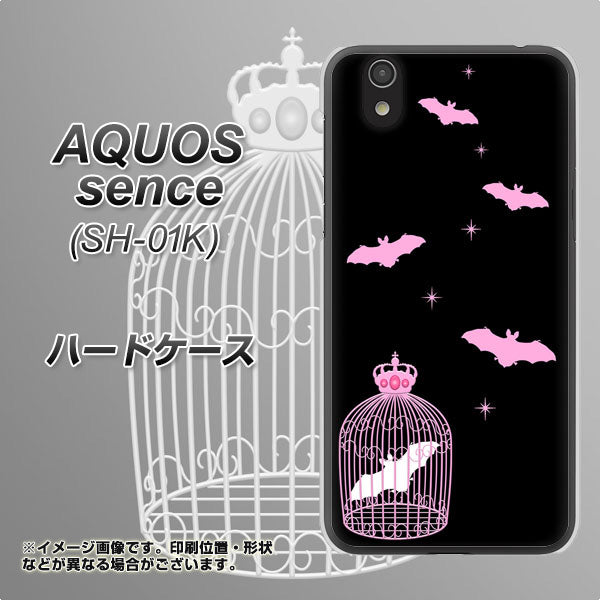 docomo アクオス センス SH-01K 高画質仕上げ 背面印刷 ハードケース【AG809 こうもりの王冠鳥かご(黒×ピンク)】